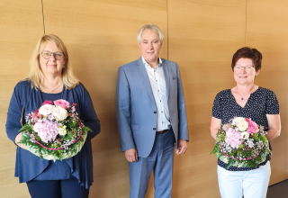 Zu 20 Jahren Firmenzugehörigkeit in der Steuerkanzlei Endris Wagner und Kollegen GbR konnte Herr Steuerberater Thomas Wagner im Sommer 2021 Frau Sibylle Stiegler (links) und Frau Waltraud Hoser (rechts) gratulieren. Er bedankte sich herzlich für die langjährige und sehr gute Mitarbeit der beiden Fachkräfte mit einem Blumenstrauß.